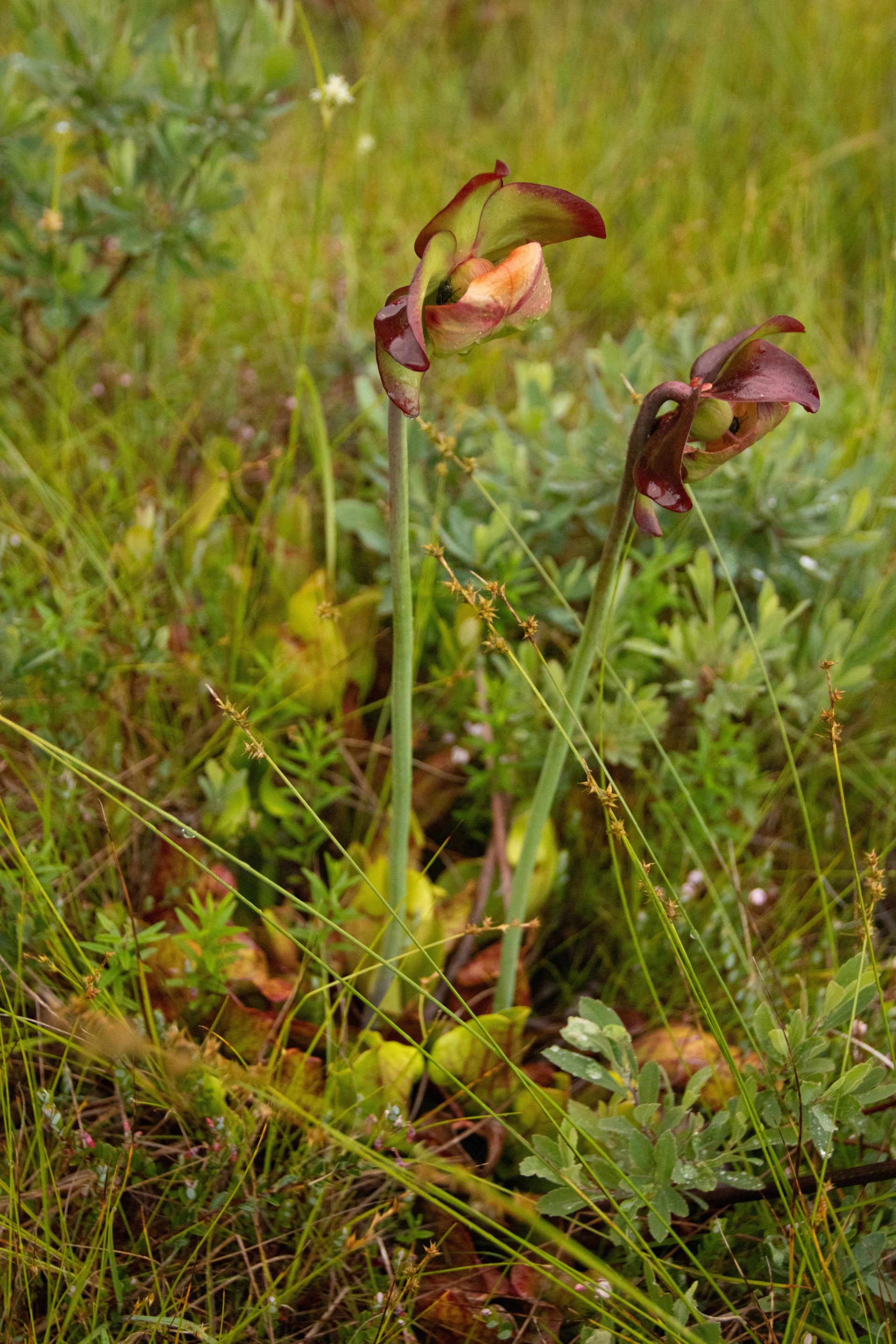 Die Schlauchpflanze ist Nationalblume Neufundlands und ist weit verbreitet in den Sümpfen und Mooren. Die Blüten erheben sich über den Schläuchen, die Insekten anlocken und vertilgen. Ob die Fliegen, die in den Blüten Schutz vor dem Regen suchten, ihre Opfer wurden, bleibt offen.