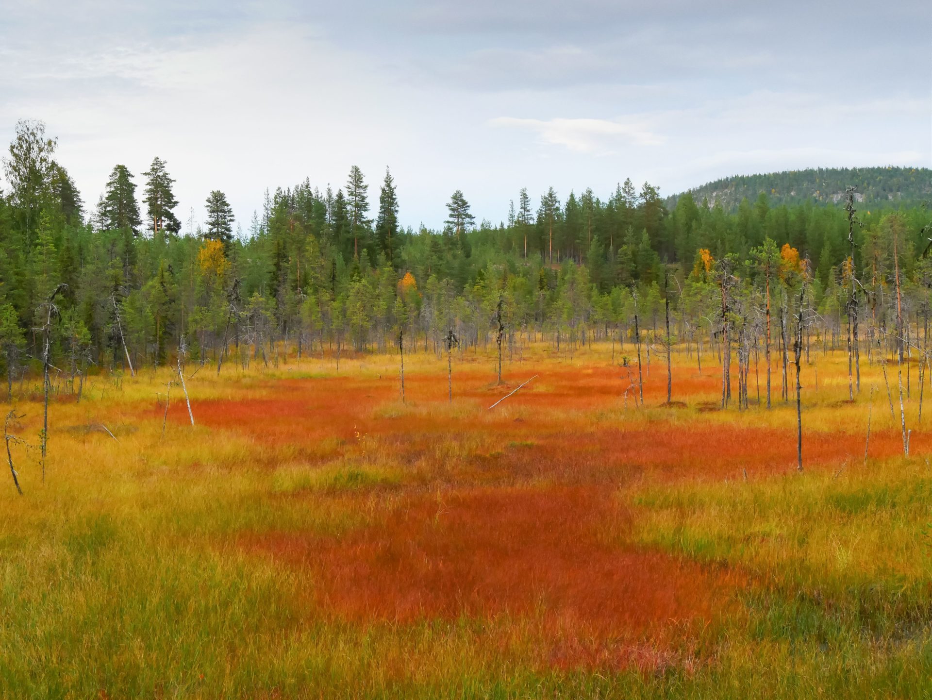 Der Ökopark Leipipir im Norden Schwedens ist eine hügelige Landschaft mit mehr als 100 kleinen Seen, unberührten Naturwäldern, Mooren und Feuchtgebieten. Er ist eine wunderschöne Wildnislandschaft ohne Wege, mit reichhaltiger Flora und Fauna und ist frei zugänglich. Im Herbst explodieren die Farben, Bäume und vor allem der Boden erstrahlen in vielen Gelb- und Rottönen.