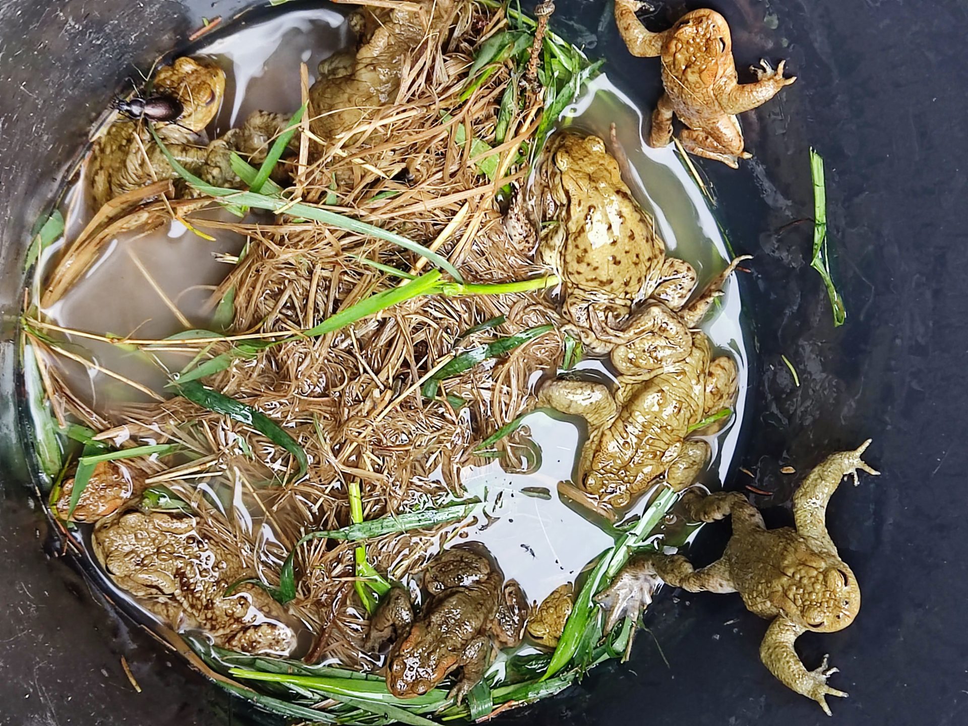 Völlig überrannt von den Frühlingsgefühlen sind die Kröten sehr beschäftigt….