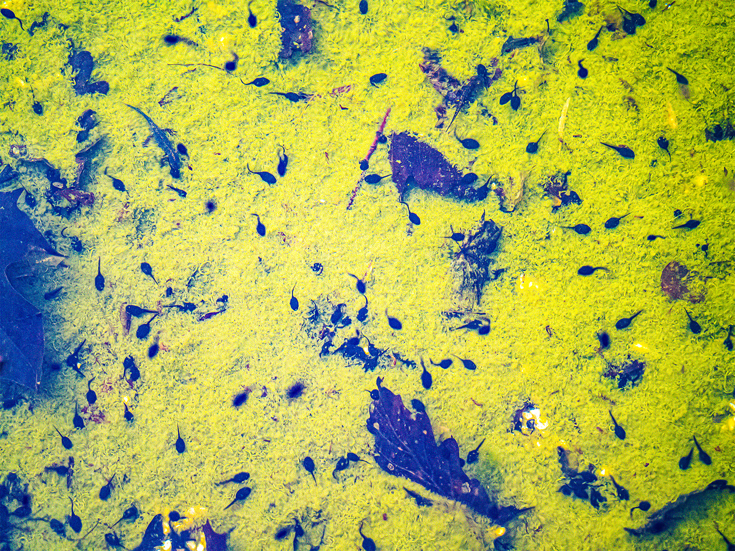 Kaulquappen in einer Wasserstelle auf dem Schloss Heidelberg