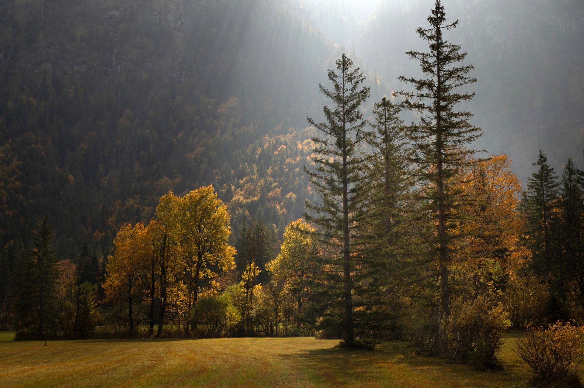 Herbstliche Färbung und Sonne Wolken Mix im Ettaler Weidmoos, der Quellregion des Flusses Ammer im Oktober 2025. Nikon Z6 mit 24-70 mm f4, F/11, 1/100 Sek, ISO 125