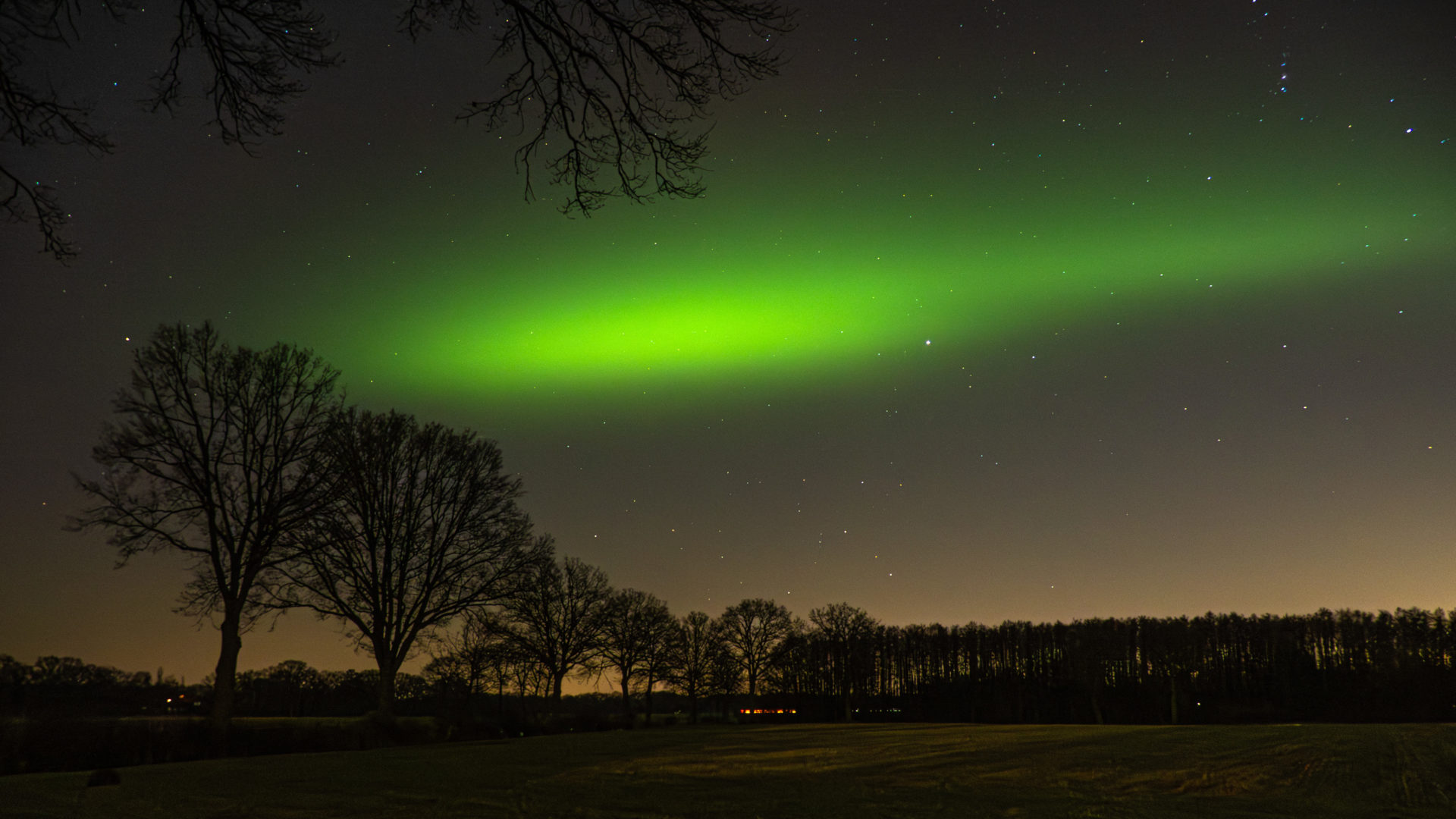 Auch über der Knicklandschaft von Schleswig-Holstein waren in diesem Jahr die Nordlichter zu sehen.