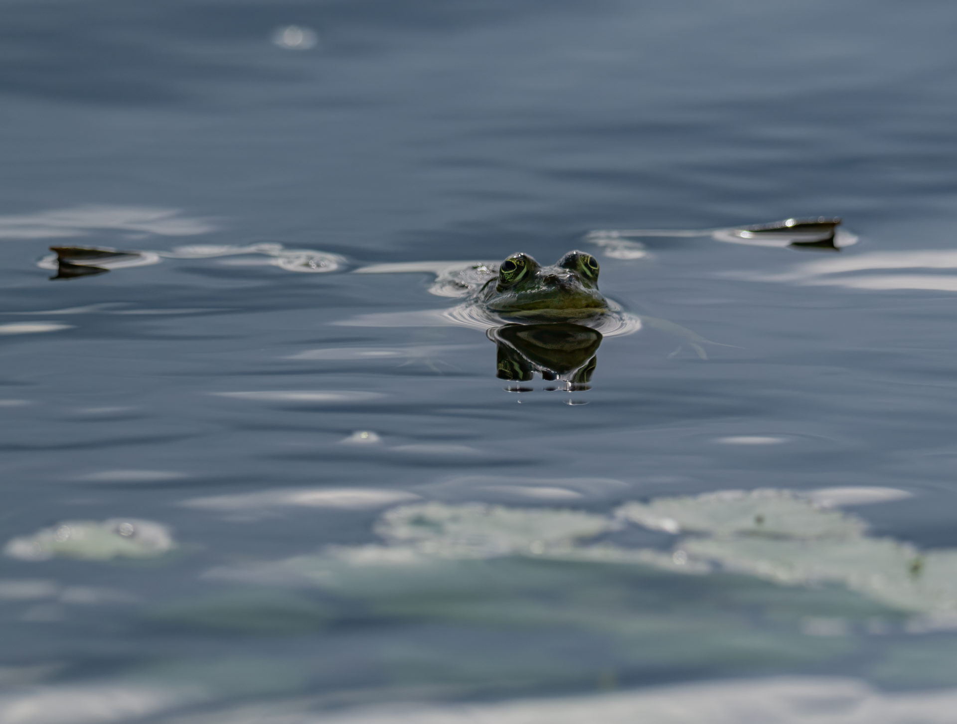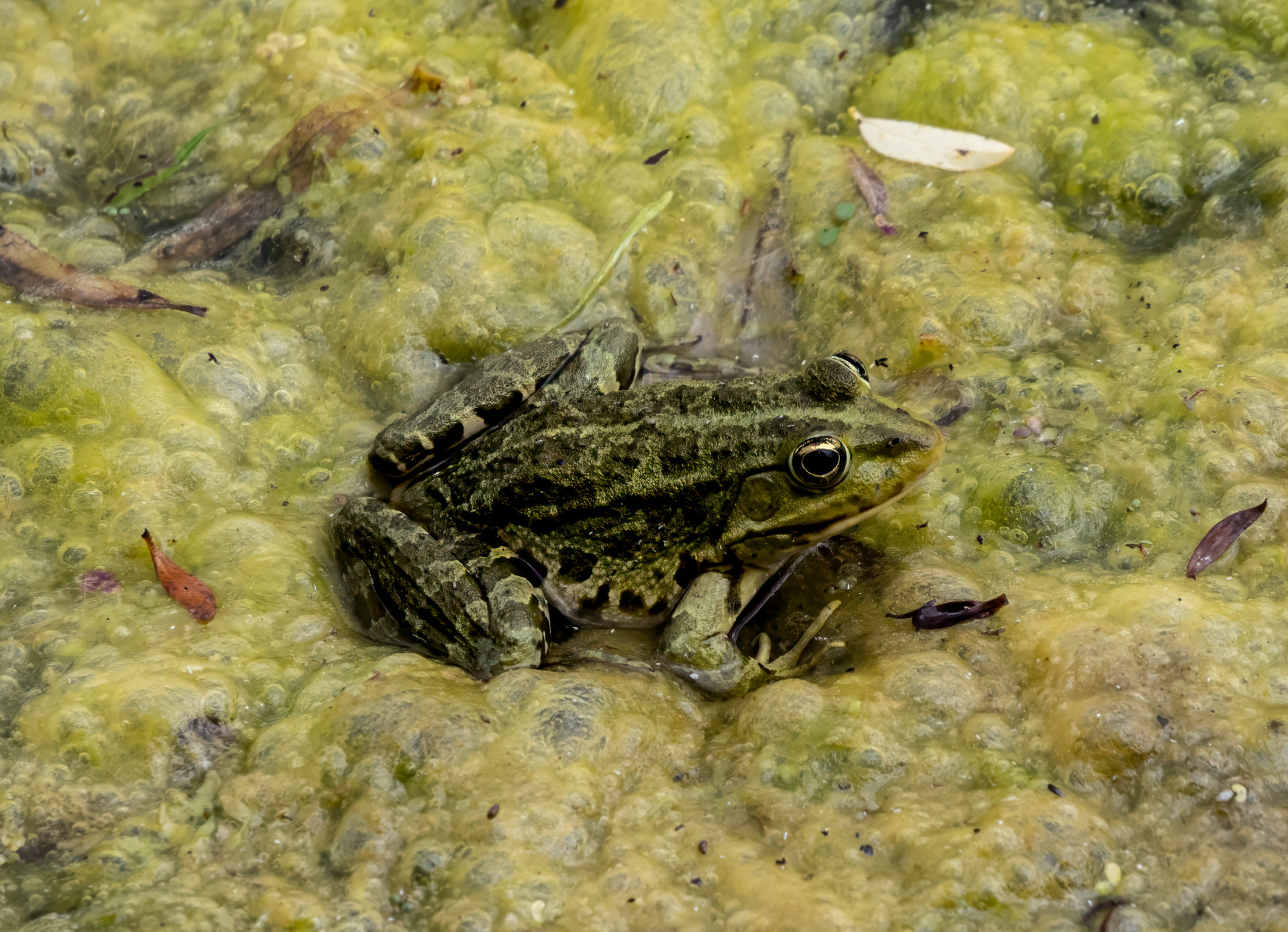 im Rahmen einer Donaudeltareise sah ich in der hintersten Ecke des Gartens einer Pension einen blubbernden Tümpel, in dem es sich dieser Frosch durchaus gemütlich gemacht hatte