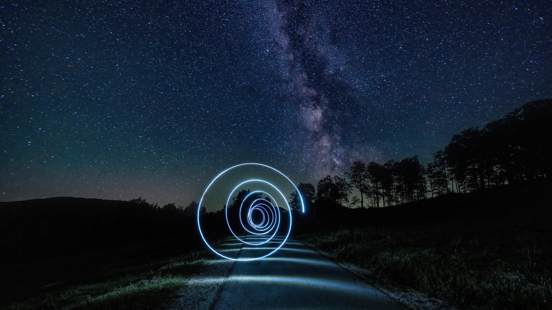 Ich fotografiere jahrzehnte aber einen Sternehimmel hatte ich noch nie gemacht. Über Freunde wurde mir der richtige Zeitpunkt und Ort genannt und ich fuhr mit. Es hat gut funktioniert aber es war mir zuwenig, daher hatte ich mit meiner Stirnlame die Idee Lichtkreise zu machen. Es waren mehrere Versuche notwendig bis mir dieses Bild gefiel.