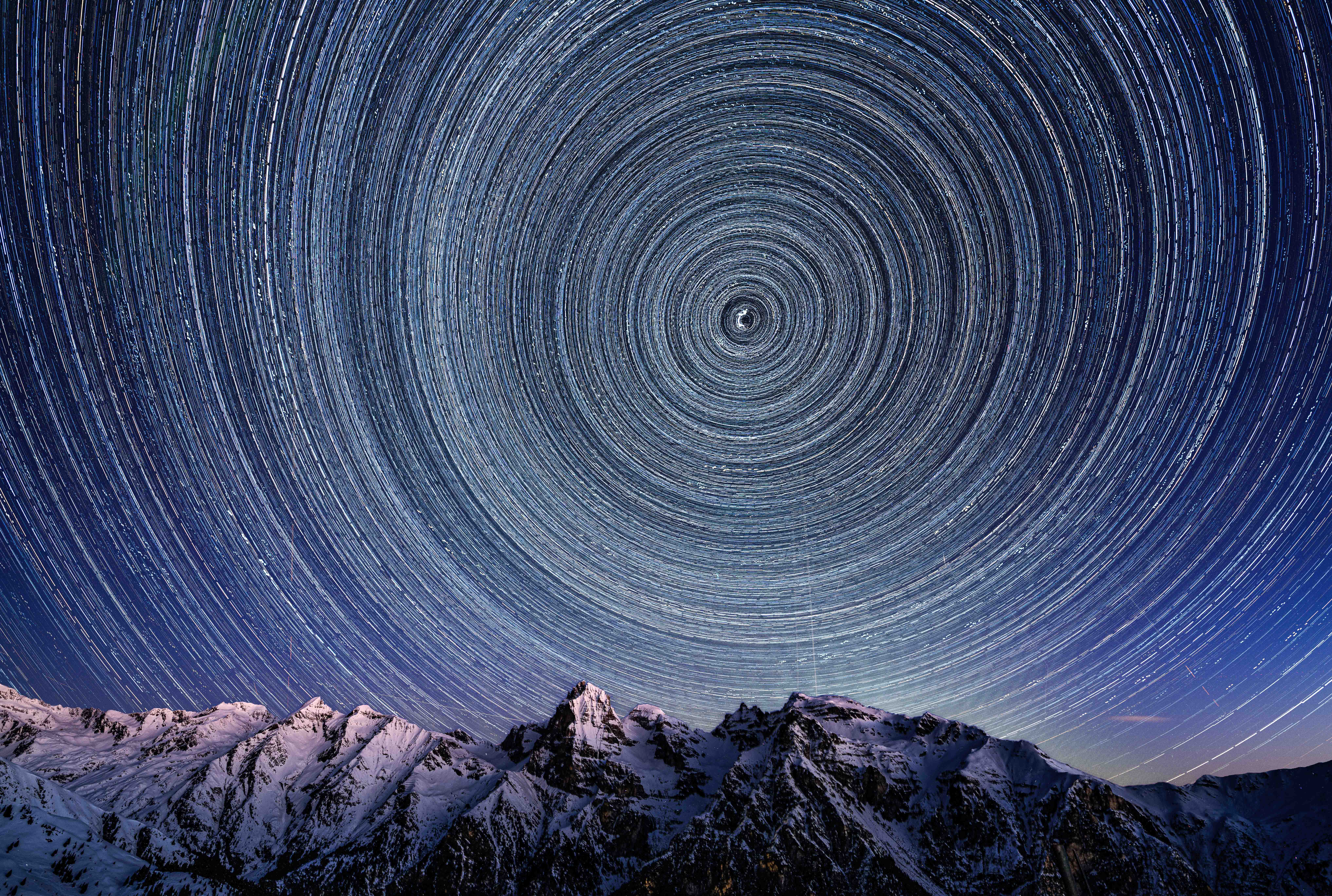 Der Pflerscher Tribulaun in Südtirol stand für uns schon immer im Zentrum des Interesses. Ganz oft haben wir ihn von allen Seiten bewundert und auch mehrmals umrundet. Es war schon lange unser Wunsch, ihn im Winter mit klarem Himmel zu fotografieren. Im Januar letzten Jahres war es dann endlich soweit. Das, eine ganze eiskalte, wolkenlose und dadurch sternenreiche Nacht belichtete Foto, zeigt den Polarstern und die kreisförmigen Sternspuren, die die fortwährend verstreichende Zeit und die rasante Drehung der Erde im Weltraum veranschaulichen. So sieht es nur die Kamera, nicht aber das menschliche Auge!