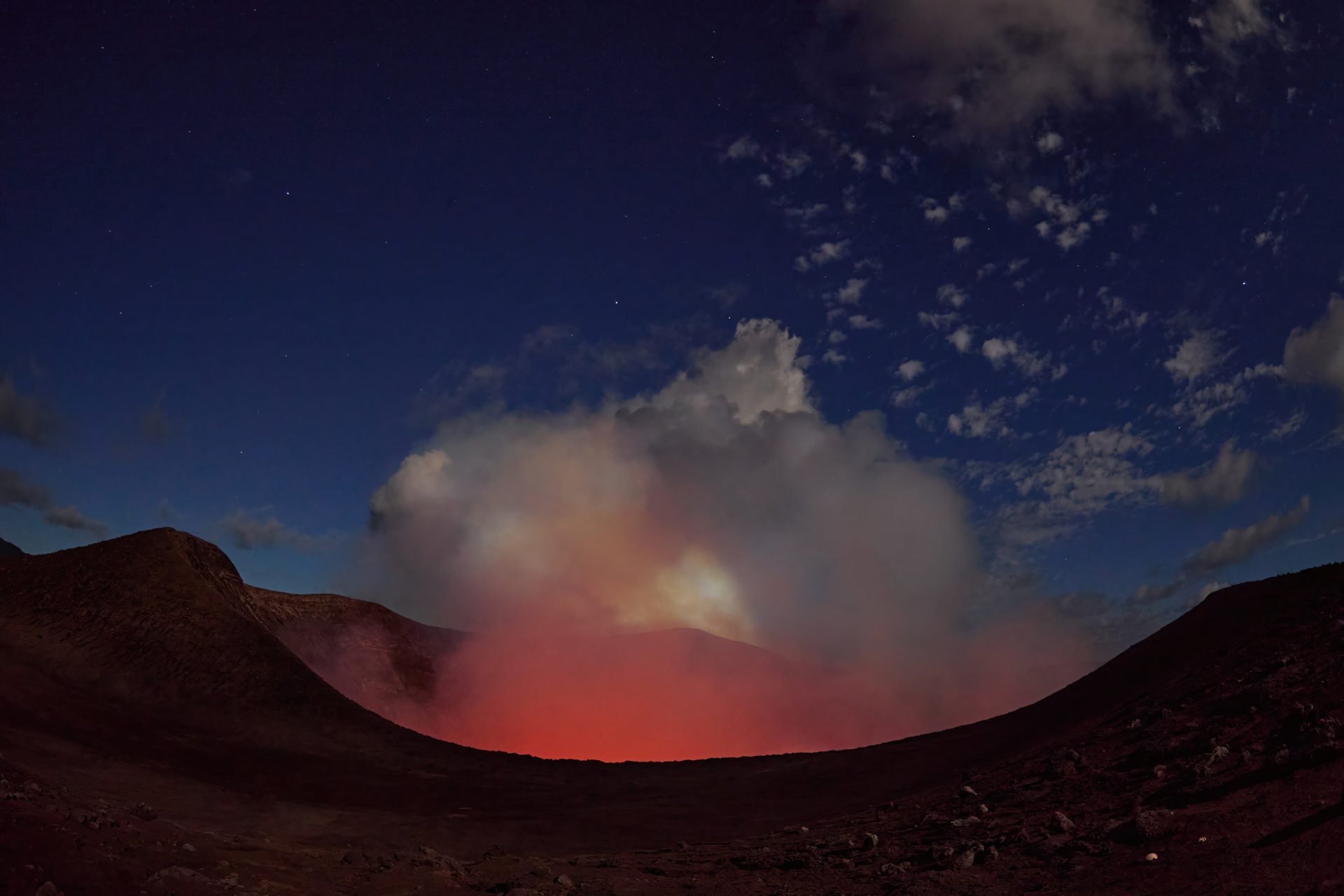 Die Aufnahme entstand bei Vollmond am Vulkankrater des Yasurs auf Tanna, Vanuatu. Bei normaler Aktivität ist ein Aufstieg bis zum Kraterrand auch gut möglich. Für mich war es ein überaus eindrucksvolles Erlebnis.