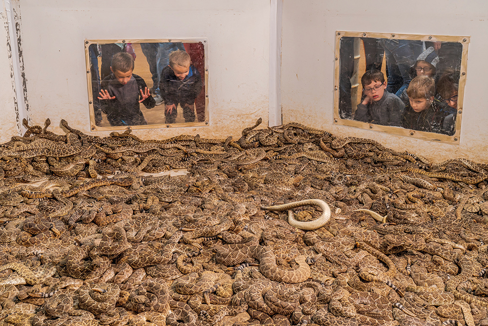 Javier Aznar hat sich für seine Serie intensiv mit der komplexen Beziehung zwischen Menschen und Klapperschlangen, insbesondere im Westen der USA, auseinandergesetzt. Im Laufe der Geschichte wurden Klapperschlangen als Symbole der Erneuerung verehrt, wie auch als Abgesandte der Unterwelt geschmäht. In den USA gelten sie als Symbol der Freiheit. Doch trotz ihrer großen kulturellen und ökologischen Bedeutung werden die ikonischen Bewohner des US-amerikanischen Westens bis heute brutal verfolgt, etwa bei Schlangenjagden wie dem »Sweetwater Rattlesnake Roundup«.
