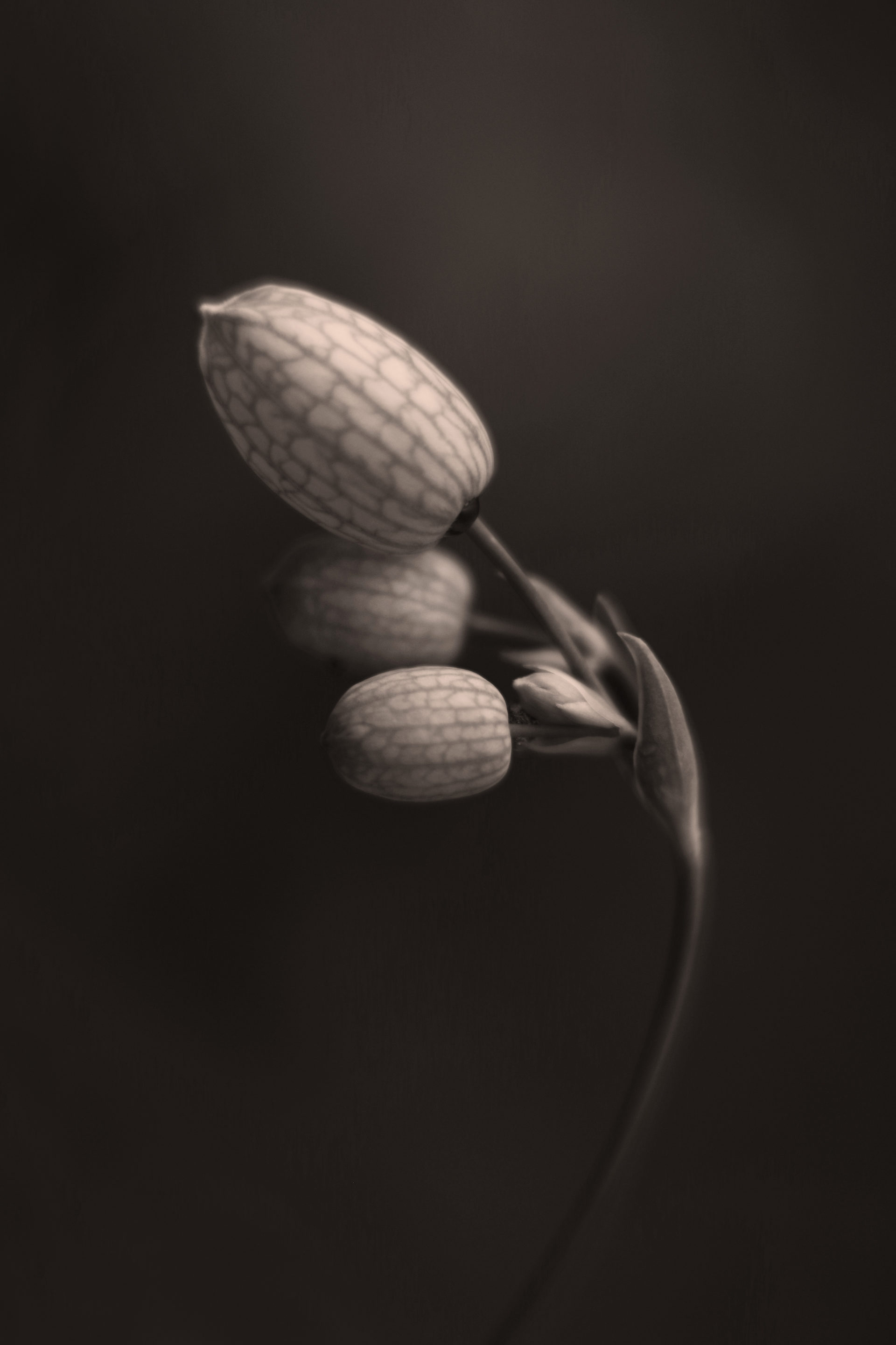 Das Taubenkropf-Leimkraut (Silene vulgaris) begegnete mir in den Alpen wie ein stiller Wächter über die jungen Knospen. Im monochromen Licht treten seine filigranen, grafischen Strukturen hervor – eine Pflanze zwischen Naturform und leiser Poesie.