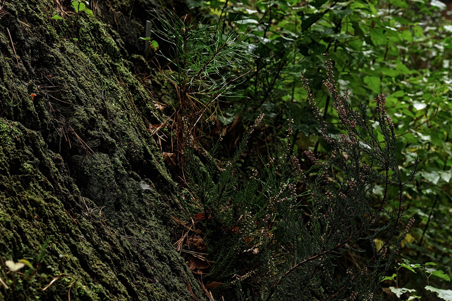 Im Rombergpark in Dortmund befindet sich ein lebendes Moor inmitten einer künstlich angelegten Heidelandschaft. Der idyllisch gelegene Moorteich kann auf einem extra angelegten Rundweg umwandert werden. Die angrenzende Dünenlandschaft rundet das norddeutsche Feeling in der Gesamtheit ab. Das Foto zeigt einen Ausschnitt vom Dach der Moorkate, welches mit Torfsoden und mit typischer „Moor-Heide“ – Bepflanzung bedeckt ist. Für eine Stadt im Ruhrgebiet sind solch angelegte Bereiche besonders für die Tier- und Pflanzenwelt sehr wertvoll und bieten gleichzeitig u.a. den Naturliebhabern und Fotografen ruhige und entspannte Orte mit schönen Motiven.