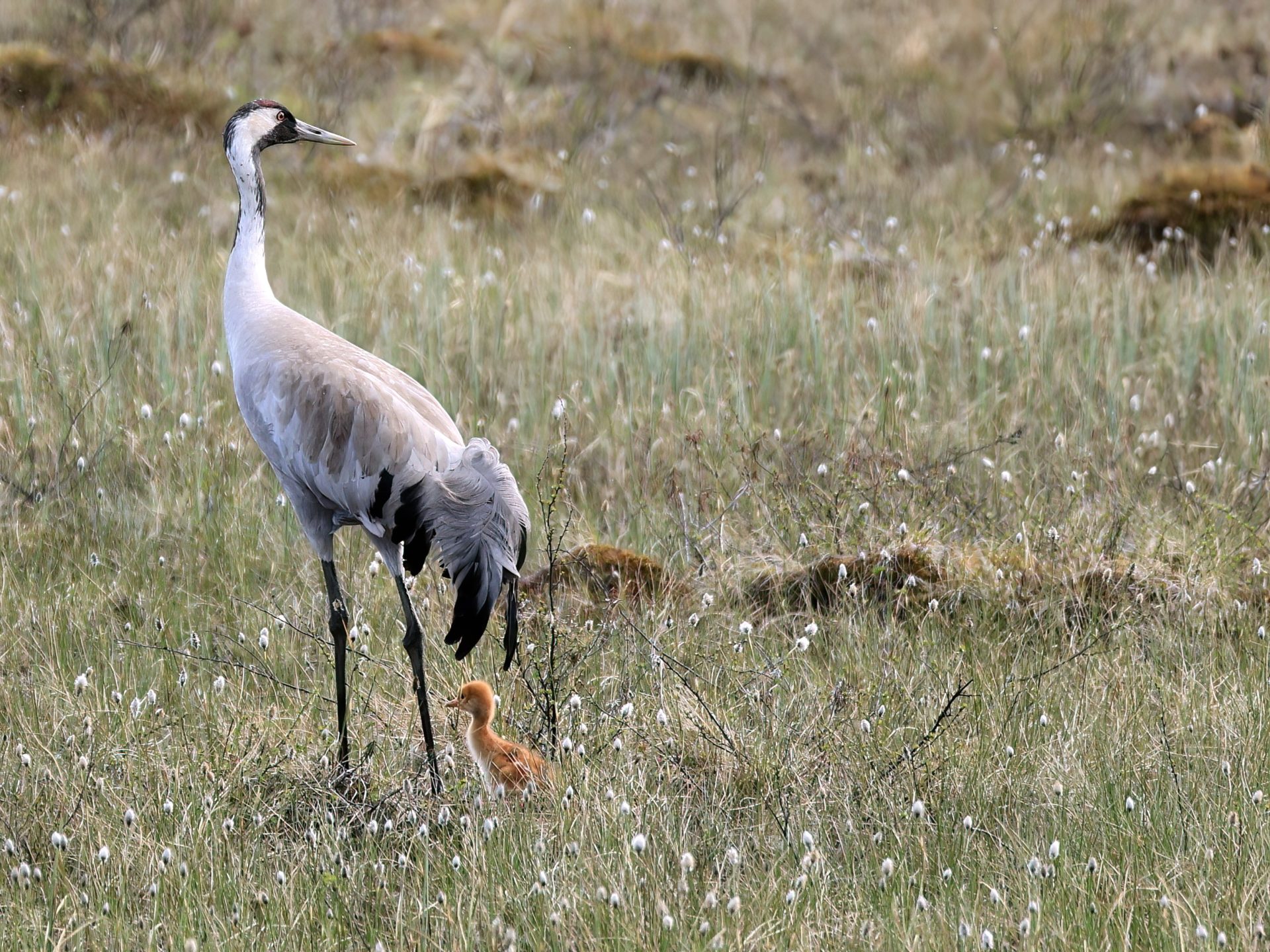 Kranichküken im Wollgras