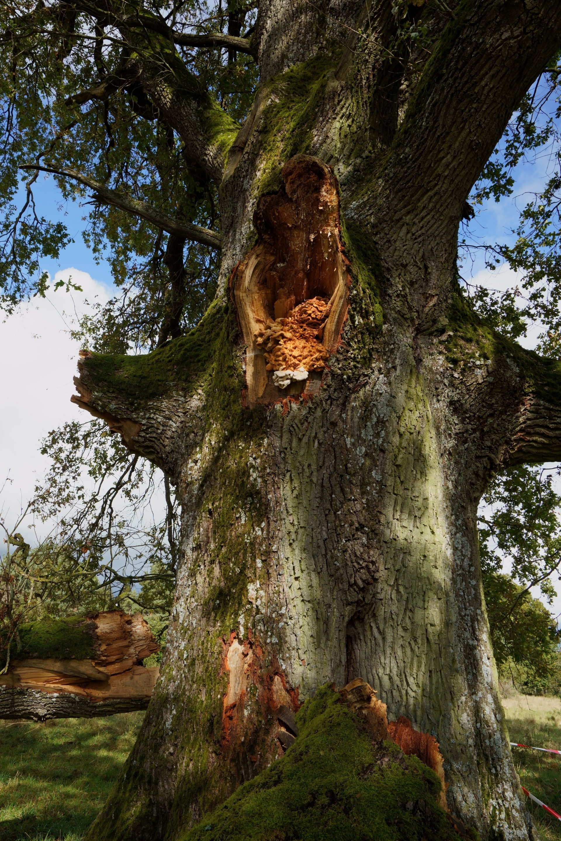 „Der Schrei“. An das berühmte Gemälde von Edvard Munch erinnert mich der Anblick dieser alten Eiche auf einem Hutanger in Mittelfranken. Große Äste sind abgebrochen, in der Wunde haben sich Pilze angesiedelt, aber immer noch ein starker Baum!