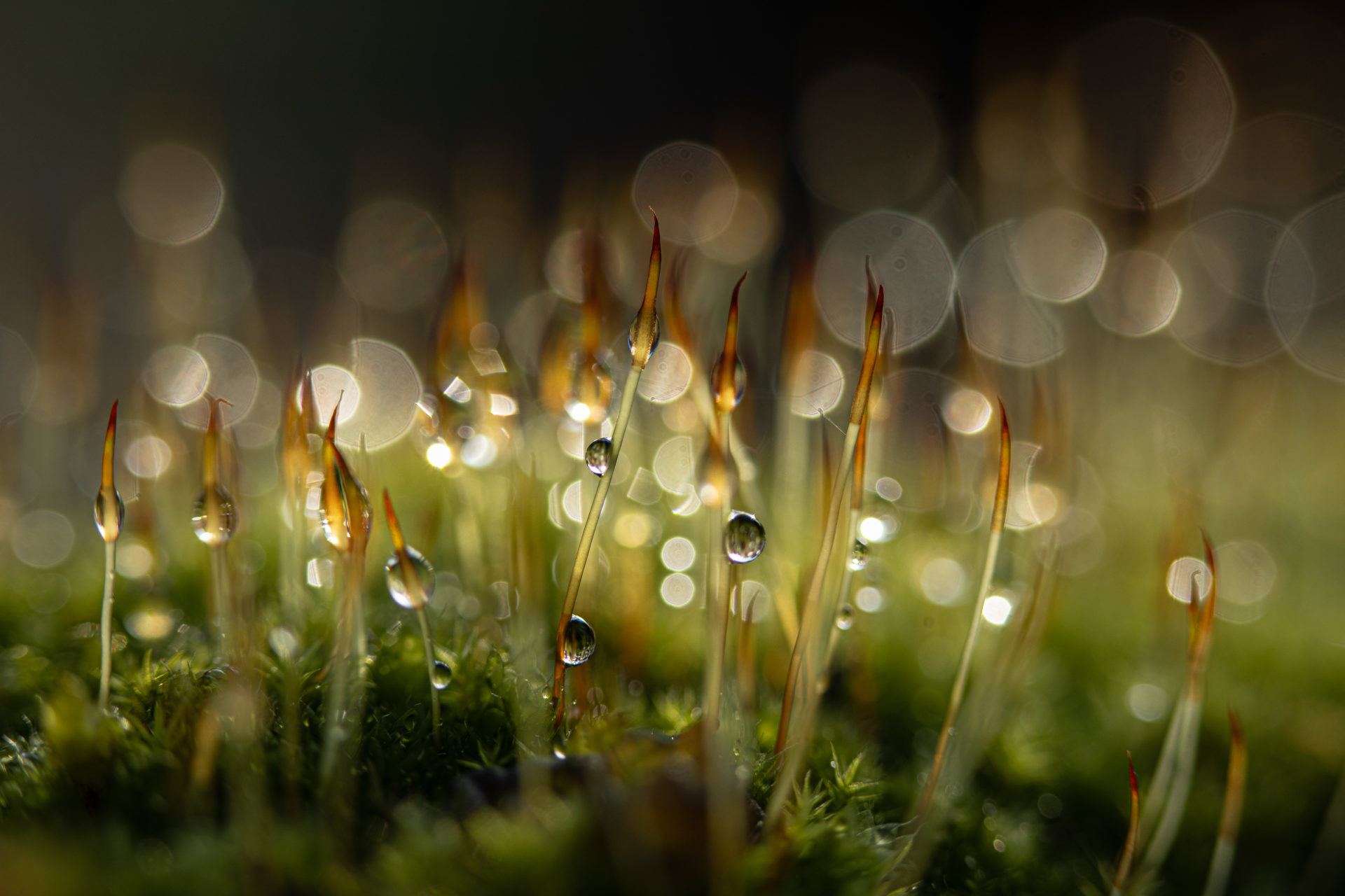 Diese zarten Geschöpfe sind Moosblüten, die ich im Herbst bei einem Spaziergang mit meinem Hund nach einer Regennacht auf einer Mauer entdeckte. Die filigranen kleinen Halme haben mich zu einer ganzen Fotoserie inspiriert. Sie sahen wie tanzende kleine Elfen aus. Da musste ich einfach schnell nach Hause und mein Macroobjektiv holen gehen.