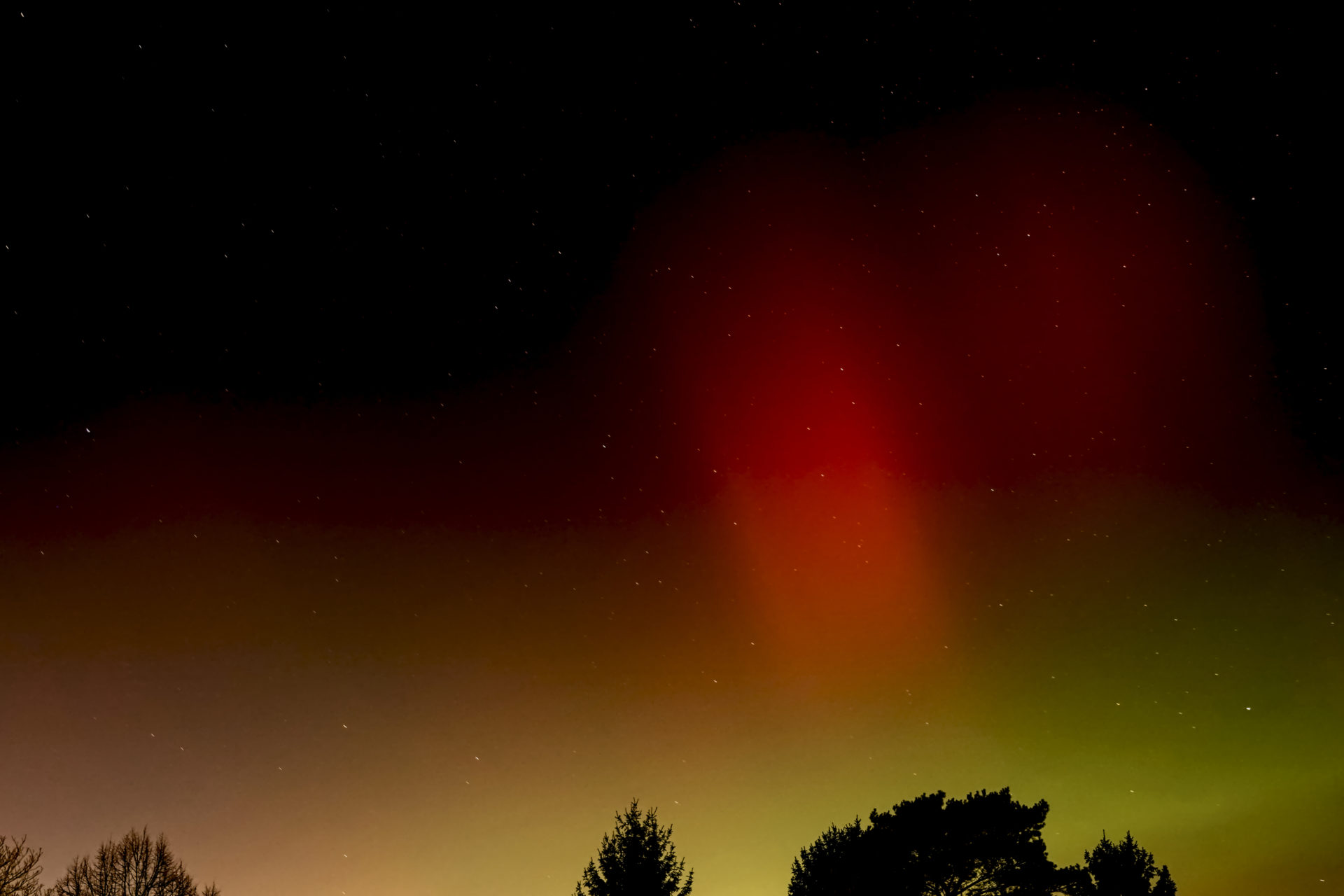Kurz nachdem ich gestern Abend mitbekommen habe, dass mal wieder Polarlichter über Deutschland zu sehen sind, holte ich sofort eine Kamera und ein Tischstativ, stellte es auf die Fensterbank und machte meine ersten Fotos von Polarlichtern. Es war unglaublich, diese Farben mit eigenen Augen sehen zu dürfen. Irgendwie möchte man dieses Naturspektakel fotografisch festhalten, aber auch bewusst erleben. Ich war trotz der Straßenlaternen erstaunt, dass es der Kamera gelungen ist, die Farben und Sterne einzufangen. Vielleicht hatte ich zu lange belichtet (30 Sek.), aber in der Zeit konnte ich die Farben selber genießen, bevor ich die Kamera erneut ausgerichtet habe. Für die nächsten Polarlichter werde ich hoffentlich besser vorbereitet sein.