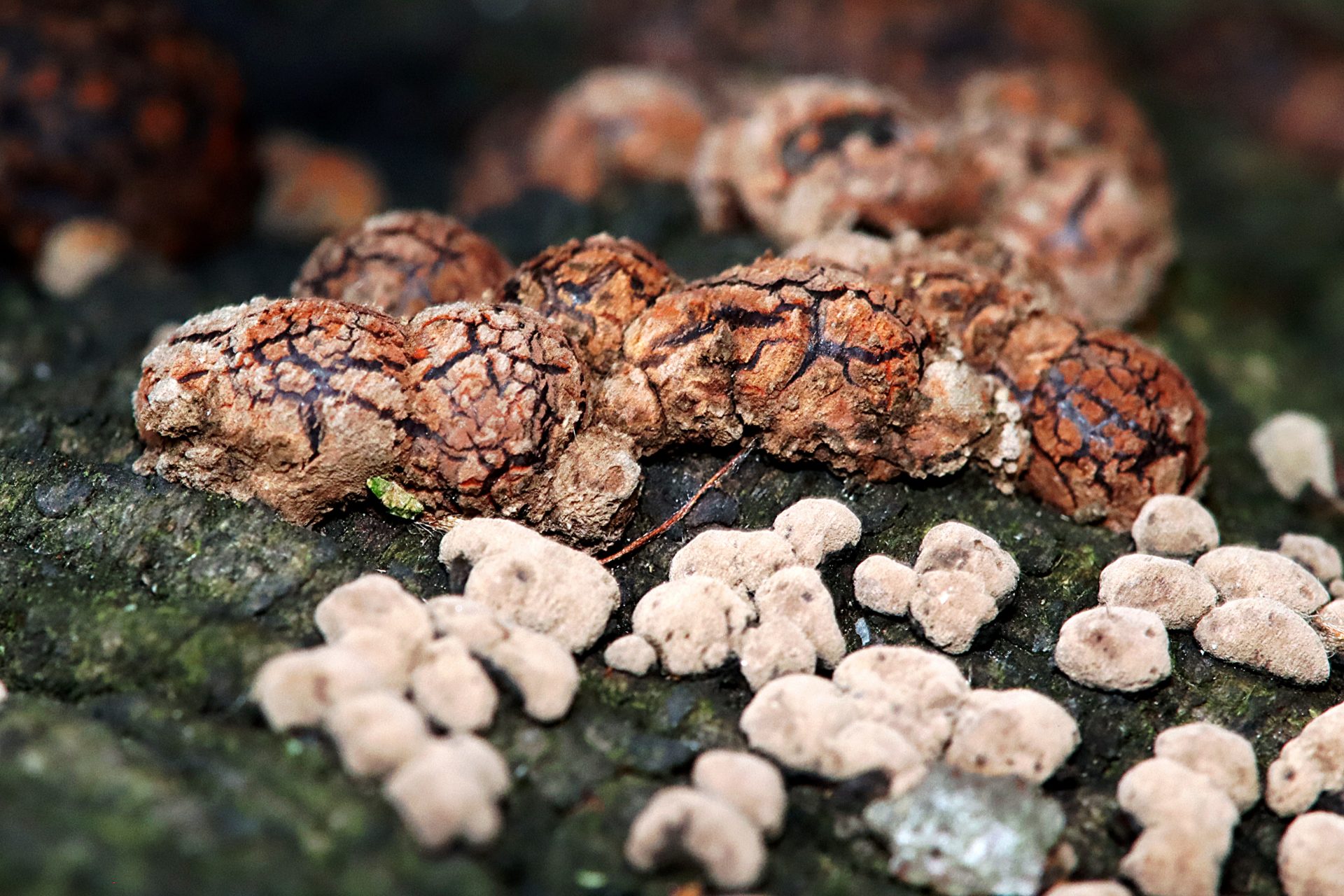 Verschiedene Flechten auf einer Stelle gesehen und fotografiert.
