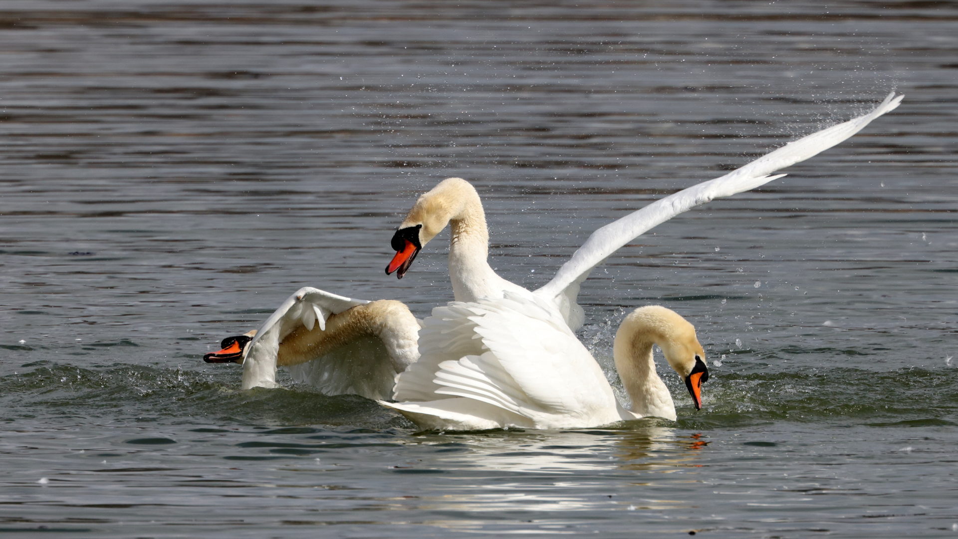 Schwanenkampf im See