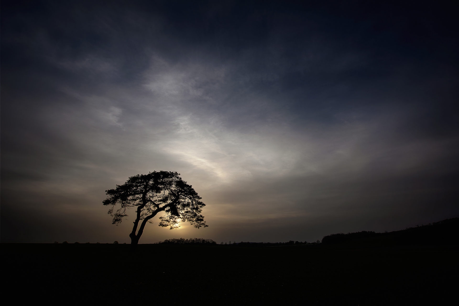 Mitten in einem Acker steht die Kiefer, immer wieder ein lohnendes Fotomotiv.