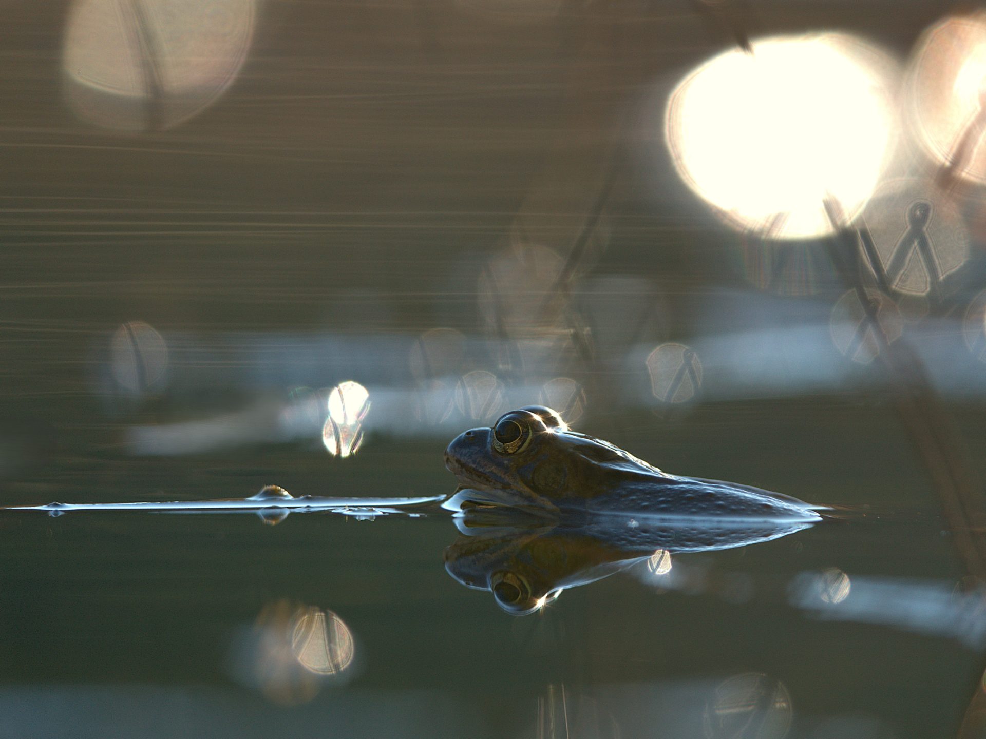 Ich war mit meiner Kamera in den Rieselfeldern unterwegs, wie so oft. Ich hörte schon von Weitem das laute Quaken der Wasserfrösche im Teich, das mich magisch anzog. Wie ein Konzert tönte ihr Quaken in der gesamten Umgebung. Immer wieder versuchte ich ihre großen Schallblasen aufs Foto zu bekommen.