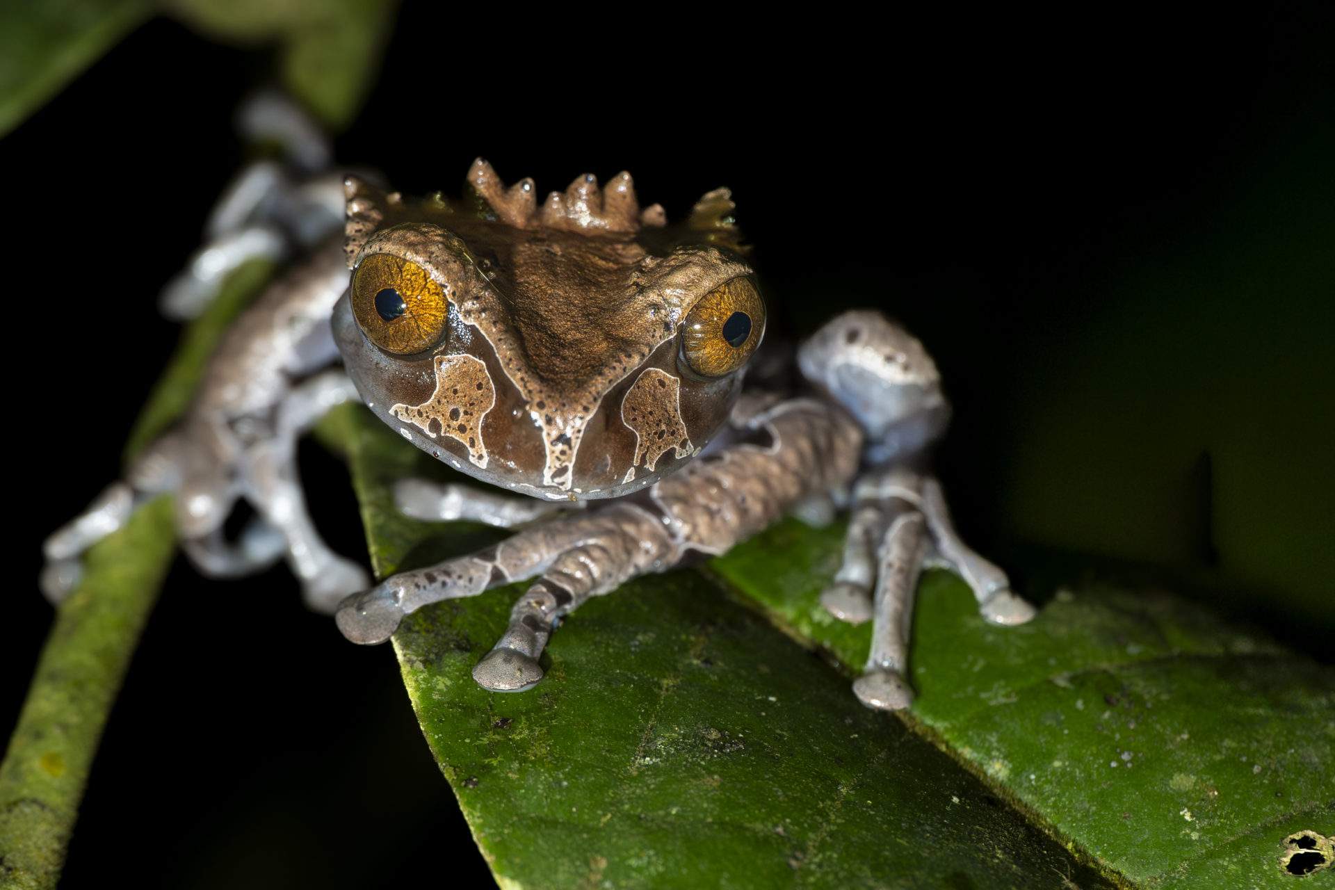 Im Oktober konnte ich in der Fränkischen Schweiz / Bayern ein ganz besonderes Naturereignis beobachten: Auf der Suche nach Feuersalamandern, entdeckte ich wie ein „Lurchi“ auf einen Springfrosch zulief. Lustigerweise überquerte der Feuersalamander den Frosch und dieser blieb in dem Moment wie versteinert unter dem Salamander stehen. Wahrscheinlich spielte mir die niedrige Temperatur von 6°C in die Karten.