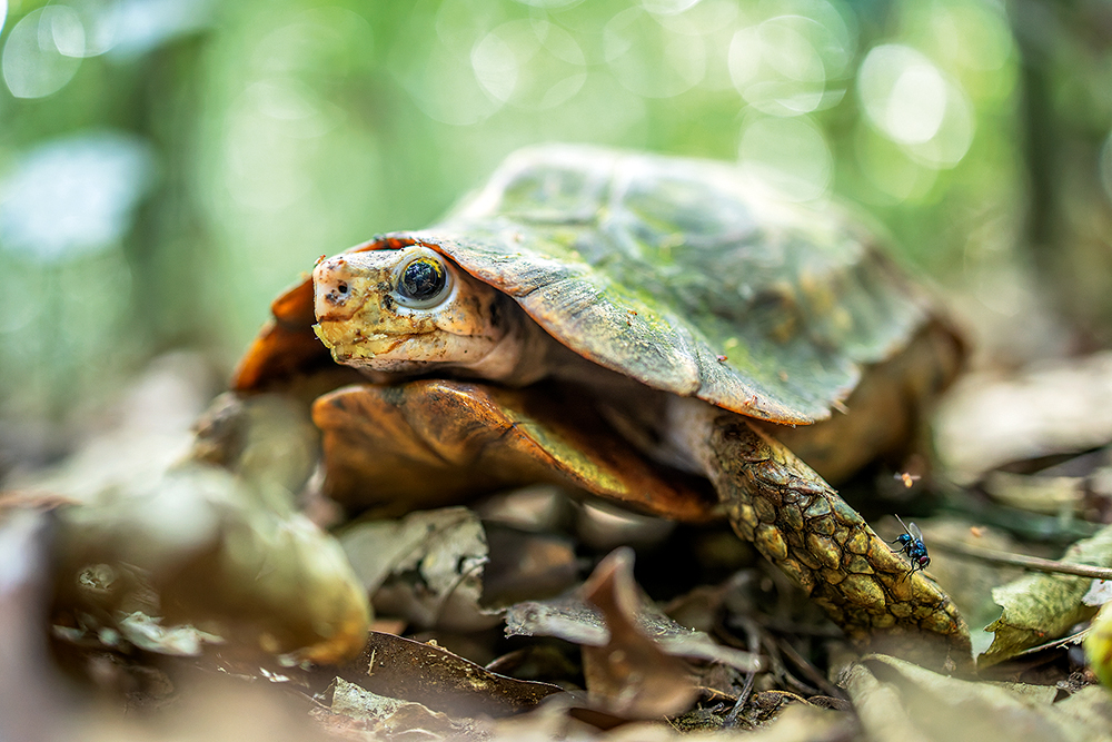 Ich nehme auf die Touren meist eine Vollformat- und eine APS-C-Kamera, ein 100-500 mm-Telezoom, ein lichtstarkes 2/135 mm-Tele, ein 100 mm-Makroobjektiv sowie ein 14-35 mm-Weitwinkelzoom mit. Damit bin ich für nahezu alle Situationen gut gerüstet. Neben der Fotoausrüstung sollte man natürlich auch immer an reichlich Trinkwasser denken, denn der Flüssigkeitsverlust ist in der schwülen Hitze des Waldes beträchtlich.