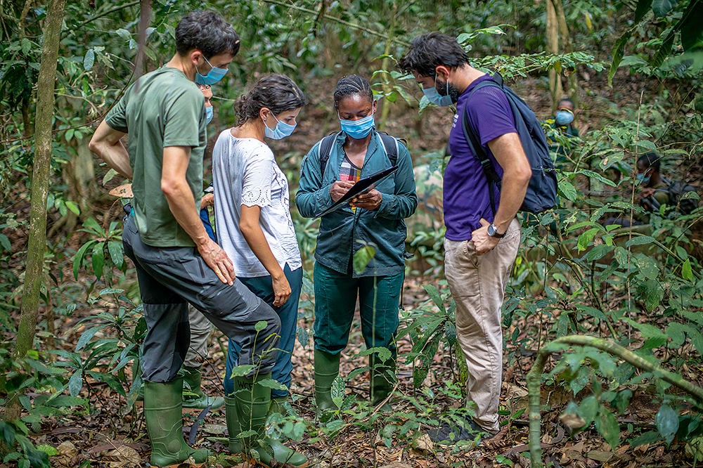 Am Anfang stand die mit viel Leidenschaft betriebene Erforschung der Schimpansen im Westafrikanischen Regenwald. Vor über 40 Jahren begannen Christophe und Hedwige Boesch mit ihren Untersuchungen im ivorischen Taї-Nationalpark. Im Lauf der Jahrzehnte entstanden – initiiert von den Boeschs – umfangreiche Forschungseinrichtungen, die nahezu alle Aspekte des Regenwald-Ökosystems umfassen. Früh schon erkannten sie auch, dass der Erhalt dieses besonderen Lebensraums ohne die Beteiligung der lokalen Bevölkerung nie gelingen kann und entwickelten gemeinsam mit der von ihnen begründeten Wild Chimpanzee Foundation ein Ökotourismus-Projekt. Hans-Peter Schaub bereist das Gebiet seit 2017 immer wieder und versucht die Arbeit vor Ort mit fotografischen Mitteln zu unterstützen.