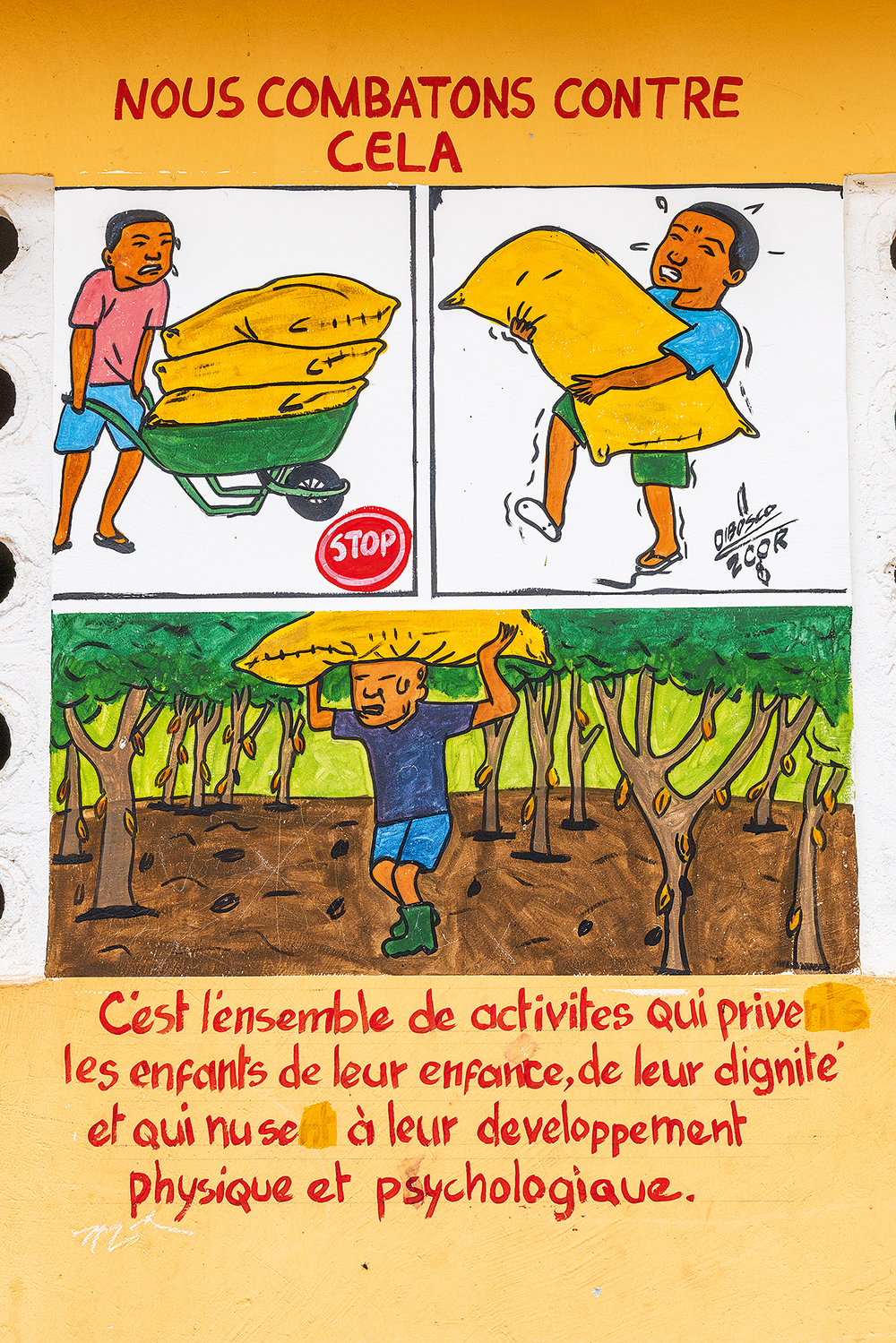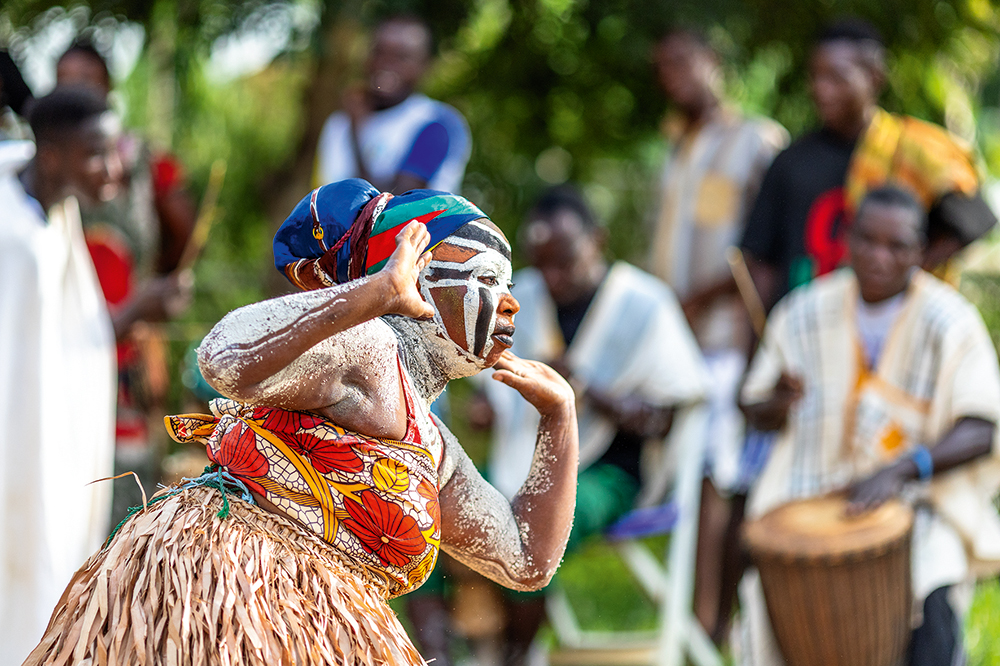 Nach rund 10 Tagen im Wald beschließe ich meine Reise mit dem Besuch in Daobly. Emma Normand, die Repräsentantin der Wild Chimpanzee Foundation in Abidjan, hatte mich gebeten, das Dorf und vor allem auch die traditionellen Tanzdarbietungen zu fotografieren. Im Dorf begrüßen mich Celestin, der die Kooperation mit Ecotourisme Taï angestoßen hat, sowie Eric. Letzterer führt mich durch die Plantagen rund um den Ort und erklärt, was hier wie angebaut wird. Am späten Nachmittag dann versammelt sich ein großer Teil der Dorfbewohner rund um den Tanzplatz und freut sich ebenso wie ich über das Spektakel, das die bunt bemalten Tänzerinnen bieten.