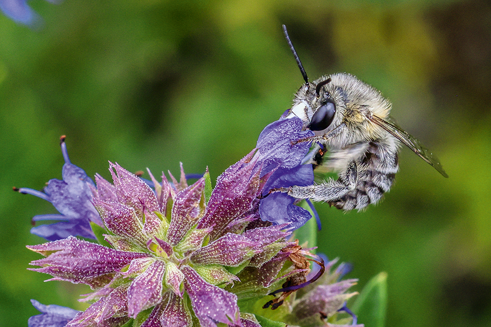 Für die Wildbienen-Makrofotografie empfiehlt sich grundsätzlich die Serienaufnahmefunktion, damit man das optimal fokussierte Bild in der Eile auch nicht verpasst. Den Bildausschnitt wählt man bei der finalen Bildbearbeitung, wobei beim Fotografieren bereits darauf geachtet wird, dass möglichst wenig zugeschnitten werden muss.